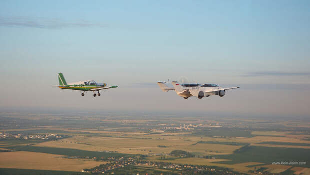 Машина с крыльями преодолела 70 км между аэропортами Нитры и Братиславы в Словакии всего за 35 минут. За рулем находился изобретатель прототипа Стефан Кляйн Видео полета опубликовано на официальном канале в YouTube. Полет AirCar проходил на высоте около 2,5 километра со скоростью 190 километров в час.