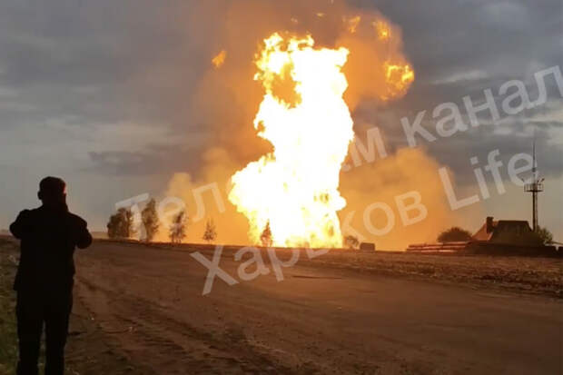 До этого стало известно, что трубопровод взорвался в Харьковской области, в радиусе 40 метров плавится асфальт, виден столб дыма.