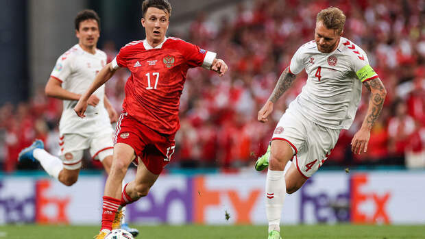 Чемпионат Европы — 2020. Группа В. Россия — Дания — 1:4. Голы: 0:1 — Дамсгард, 24; 0:2 — Поульсен, 51; 1:2 — Дзюба, 70(пен); 1:3 — Кристенсен, 80; 1:4 — Мехле, 82.