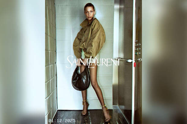 29-летняя Белла Хадид снялась в новой рекламной кампании бренда Saint Laurent. Супермодель примерила комбинезон с короткими шортами, который был украшен кружевом. Манекенщица также надела коричневую замшевую куртку, черные колготки и золотые босоножки на каблуках.
