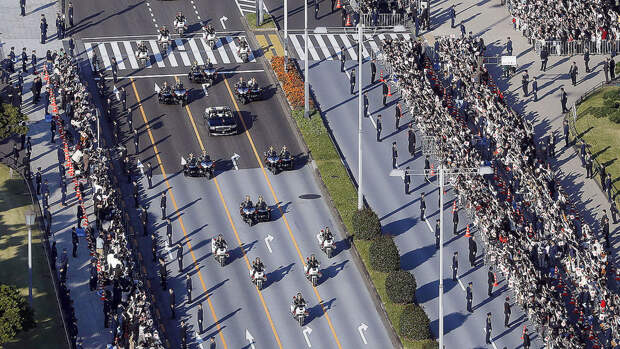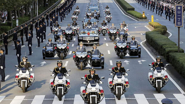 Протяженность шествия составила 4,6 км – парад продолжался около получаса. Помимо императорской четы, в нем приняли участие другие члены монаршей семьи Японии, а также правительственные чиновники – в том числе, премьер-министр страны Синдзо Абэ.