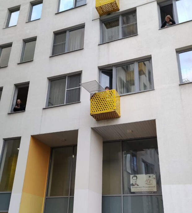 До прибытия спасателей неравнодушные соседи успокаивали ребенка. На кадрах с места происшествия видно, как малолетний сидит в корзине для кондиционера, а из соседних окон и земли за этим наблюдают очевидцы.