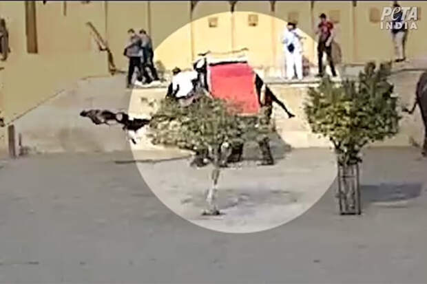 Инцидент произошел в городе Джайпур. На кадрах с места инцидента видно, как животное схватило женщину хоботом за ногу и закружило. После этого крупный зверь швырнул пострадавшую вниз.