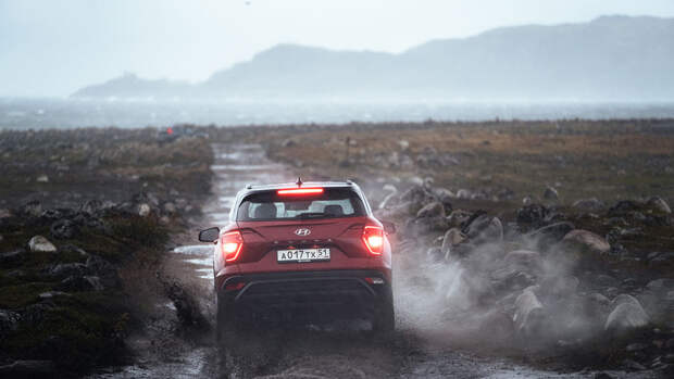 На дорогах Мурманской области, где трасса с приличным асфальтом без предупреждения сменяется старой гравийкой, а потом плавно переходит в условно проезжую каменистую тропу, Creta с мотором 2.0 держится вполне уверенно. Подвеска достаточно энергоемка, чтобы двигаться по камням, сбавляя скорость лишь на очень крупных ухабах. Но держаться за руль в таких условиях следует крепко и вести себя сосредоточенно – двигаться в расслабленном темпе не получится. На асфальте новая Creta с перенастроенным рулевым управлением управляется вполне точно.