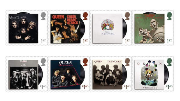 Всего было выпущено 13 почтовых марок с изображением участников группы, а также обложек их альбомов Sheer Heart Attack, News of the World, Greatest Hits и других.