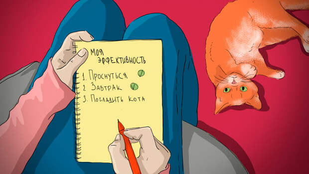 Клянусь, это реальный "список дел" человека, считающего свою жизнь наполненной, а себя – чрезвычайно эффективным. Вам смешно? Мне – очень. Наверно, потому, что я никогда не воспринимала утренние подъемы как дело. Ну встала и встала, мы все делаем это каждый день. Готовим еду, покупаем продукты, ходим на работу. Стараемся не расстраиваться, когда орет начальство. Смотрим кино, читаем книги – это вообще не дело, а развлечение! Где тут эффективность, ткните пальцем!