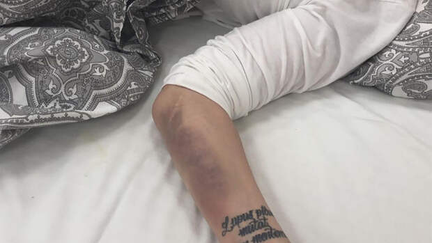 Соколова опубликовала у себя в инстаграме фото, на которых покрытая синяками певица лежит на больничной кровати. В аварию певица попала, торопясь из аэропорта на съемки клипа "Абонент не доступен".