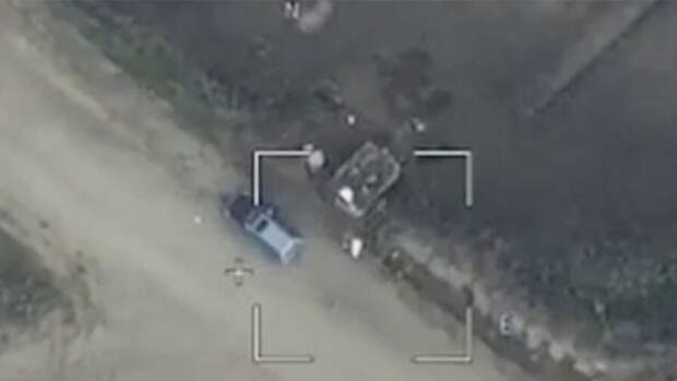 Минобороны показало съемку применения барражирующего боеприпаса "Ланцет". Видео опубликовано в Telegram-канале агентства РИА "Новости".