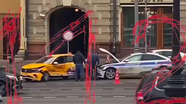На Моховой улице в центре Москвы произошло ДТП с участием такси и полицейского автомобиля, сообщает Telegram-канал 112.