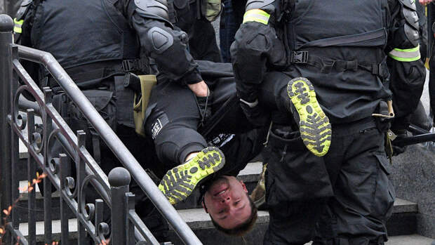 Тут же начались массовые задержания протестующих людьми в черных балаклавах, бронежилетах и с дубинками. Параллельно колонне митингующих двигались несколько машин правоохранителей, также поблизости курсировали несколько бронетранспортеров без вооружения.