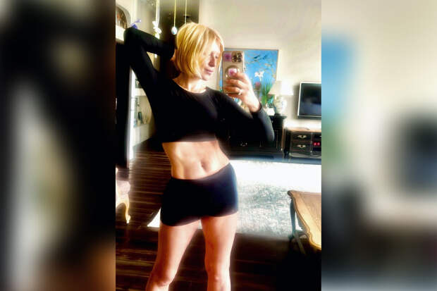 52-летняя актриса Ирина Гринева похвасталась своим прессом. Звезда позировала у себя дома в коротких шортах и кроп-топе с длинными рукавами. Она снялась перед зеркалом после утренней зарядки и поделилась кадром в Instagram.