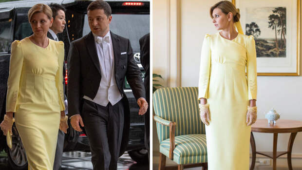 В конце октября супруга Владимира Зеленского соблюла все стандартные требования к гардеробу для подобных случаев — перчатки, туфли закрытого фасона и клатч оказались безукоризненными. Однако платье в пол вызвало большой резонанс в первую очередь благодаря лимонно-желтому цвету и низкой степени образованности комментаторов на Facebook, решивших, что выбранный Зеленской оттенок могут носить только члены японской королевской семьи.