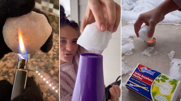 В видеороликах американцы подносят снежки к зажигалкам, свечам и фенам в попытках растопить их, однако снег не тает, а коптит, становясь черным.
