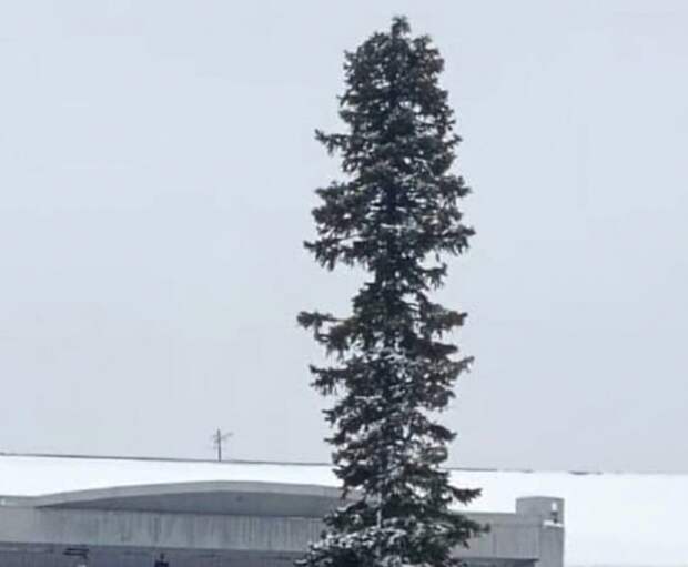 Праздничное дерево уже прозвали "ершиком". Известно, что ранее в городе была другая елка, но ее сдуло ветром.