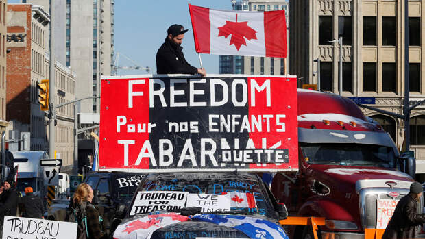 В Канаде продолжаются массовые протесты водителей грузовиков. Они недовольны введенными 15 января антиковидными ограничениями и теперь выступают за их отмену.