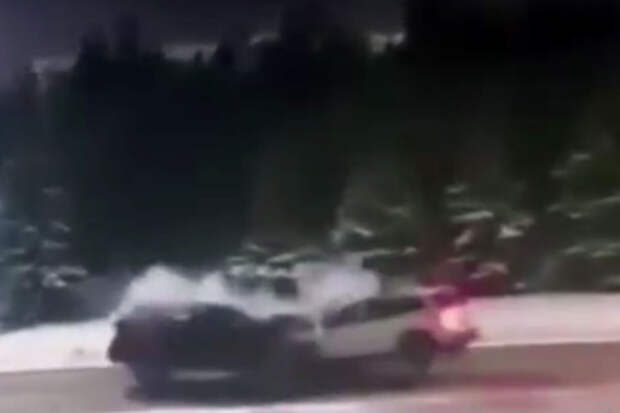 Уличная камера запечатлела инцидент. На кадрах видно, как машины на скорости врезаются друг в друга, от удара их детали разлетаются по проезжей части.
