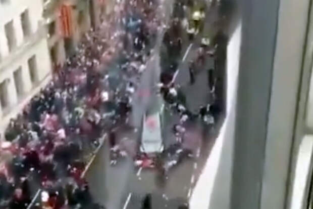 Автомобиль въехал в толпу болельщиков "Ливерпуля" во время чемпионского парада в честь победы команды в Английской премьер-лиге (АПЛ). Видеозаписи инцидента стали появляться в социальных сетях.