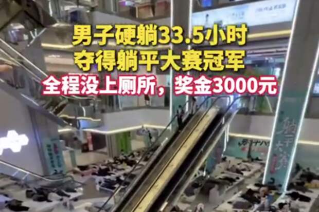 Житель Китая установил рекорд по лежанию на матрасе, не вставая на протяжении 33 часов. Мероприятие прошло в одном из торговых центров провинции Внутренняя Монголия, пишет Telegram-канал "Подъем".