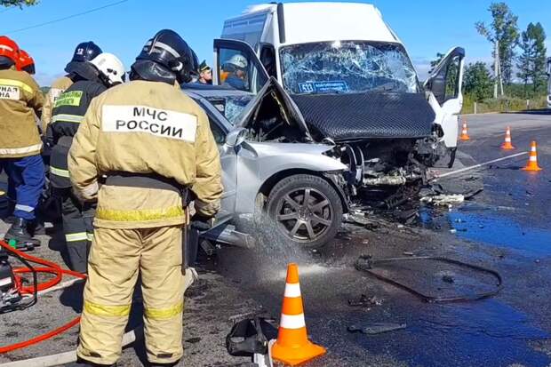 Маршрутное такси Iveco попало в лобовое ДТП с легковым автомобилем Toyota Crown в Амурской области. Об этом сообщается в Telegram-канале местного управления ГИБДД.