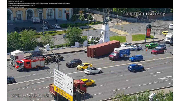 "На Тверском путепроводе (Ленинградский проспект, 2) произошло падение контейнера от фуры на проезжую часть", - говорится в сообщении.