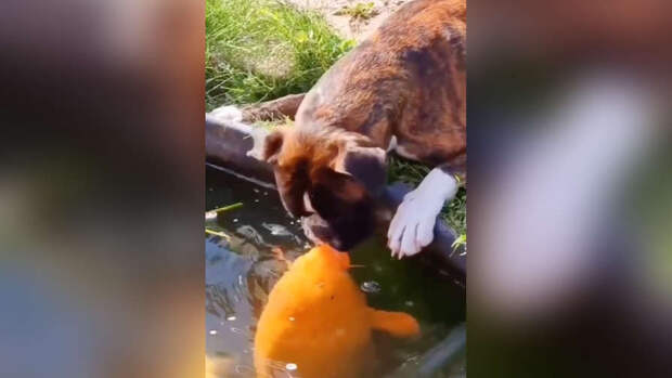 На популярном интернет-форуме Reddit пользователи обсудили видео, в котором собака пытается облизать крупную рыбу в пруду, которая сама заинтересовалась любопытным домашним животным. В результате ситуация выглядела так, словно рыба и собака целуют друг друга.