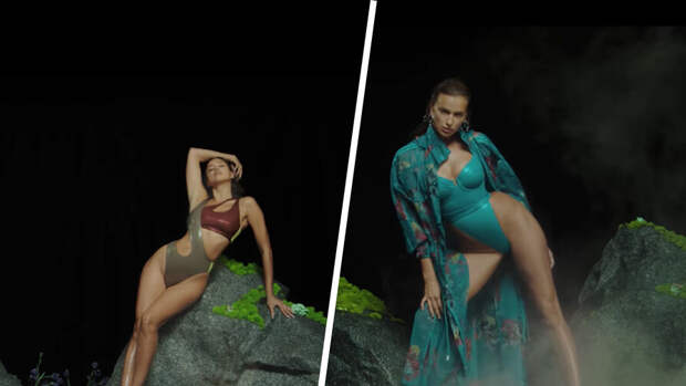 36-летняя Ирина Шейк выложила в личном блоге новый видео-кампейн adidas x IVY PARK. В кадре российская супермодель сменила несколько купальников — от раздельного неонового до слитного бирюзового с чашками — и позировала в бикини посреди мшистых скал.