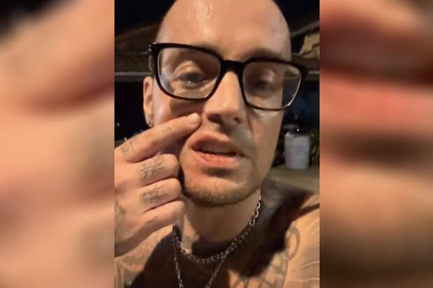 В ролике Долматов показывает, что у него разбита губа, а также раны на локте.