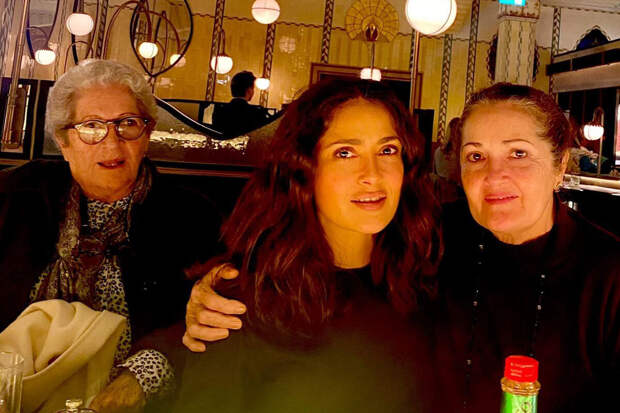 56-летняя звезда отправилась в ресторан, где отметила сразу два дня рождения близких людей. Перед камерой она позировала вместе с именинницами — матерью и тетей. Для торжества Сальма Хайек предпочла черный топ и решила отказаться от макияжа и укладки.