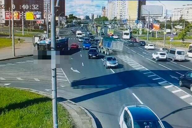 Момент выезда самосвала на встречную полосу в Санкт-Петербурге и его столкновения с потоком машин зафиксировали камеры наблюдения. Видеозапись с моментом ДТП опубликована в Telegram-канале ГУ МВД по Санкт-Петербургу и Ленинградской области.