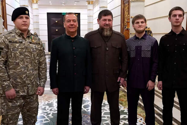 "Кадыров обнял Медведева", - говорится в подписи.