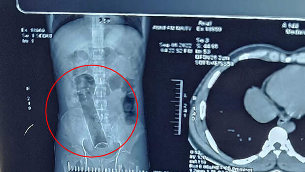 По словам врачей, мужчине пришлось перенести экстренную операцию, чтобы извлечь инородное тело. "Этот случай был для нас большим событием. Мы относились к этому с большой осторожностью", - отметил один из медиков. Однако в ходе хирургического вмешательства у пациента были повреждены как пищевод, так и кишечник. Ранее сообщалось, что врачи извлекли 20-сантиметровую бутылку из заднего прохода 50-летнего иранца, который боялся рассказать жене о случившемся. Пострадавший вставил бутылку вверх дном, чтобы затем вытащить ее за горлышко, однако сделать это самостоятельно у него не получилось: предмет застрял в толстом кишечнике.