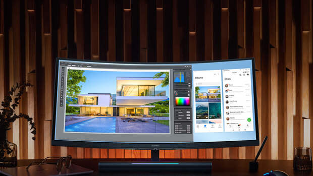Минимальная толщина экрана MateView - всего 9,3 мм, а максимальная - 13 мм. Экран занимает 94% фронтальной поверхности устройства, и узкая передняя рамка не отвлекает взгляд от картинки. Монитор оснащен интегрированной подставкой с двумя фронтальными динамиками мощностью по 5 ВТ. Подставка регулируется по высоте и углу наклона, чтобы максимально адаптировать устройство под себя.Вторая новинка, Huawei MateView GT - это игровой монитор с частотой обновления 165 Гц и привлекательным дизайном с металлическими элементами. Устройство имеет очень широкую диагональ в 34 дюйма и изогнутую форму, что позволяет ему не выглядеть громоздким и обеспечивать полное погружение в игровой мир.
