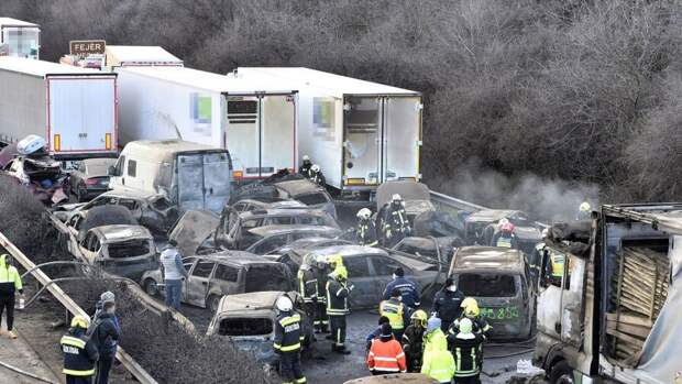 Инцидент произошел 11 марта на шоссе M1 в 25 километрах к западу от Будапешта. В результате аварии 19 автомобилей загорелись, 36 человек получили травмы. 13 человек госпитализировали с серьезными травмами, одного - в тяжелом состоянии.