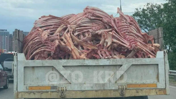 Жители Краснодара заметили машину, нагруженную окровавленными костями большого размера. Об этом сообщает Telegram-канал "Западный обход Краснодар".
