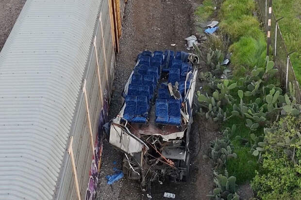 "Автобус следовал из Сан-Фелипе-дель-Прогресо в Мехико. Грузовой поезд протащил его по рельсам сотни метров метров, прежде чем остановиться.