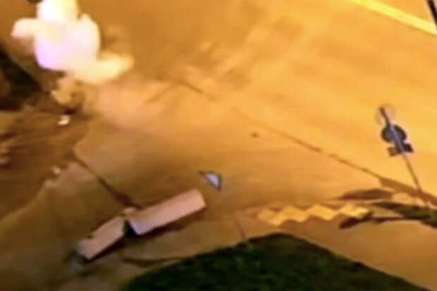 Уличная камера запечатлела инцидент. На кадрах видно, как из проезжающего автомобиля люди выбрасывают предмет, который после взрывается.