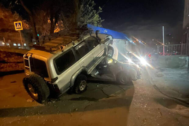 Жительница Владивостока случайно заехала на крышу легковушки на своем Toyota Land Cruiser. Об этом сообщает телеканал "РЕН ТВ" со ссылкой на УМВД России по Приморскому краю.