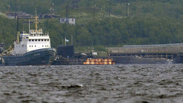 Снимок был сделан на фоне спасательного буксира Северного флота "Оренбург" в Североморске.