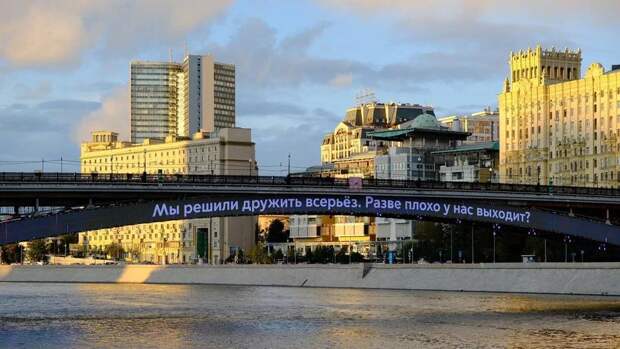 На Смоленском метромосту впервые москвич сделали предложение руки и сердца. Для этого была использована надпись на экране, сообщается в Telegram-канале столичного Дептранса.