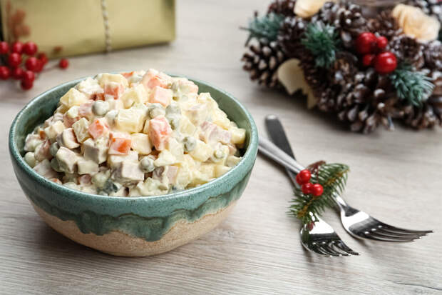 Исследование есть у "Газеты.Ru".Снижение стоимости "Оливье" и "Сельди под шубой", приготовленных из ингредиентов собственных торговых марок, аналитики компании связали с удешевлением яиц (на 35%) и овощей (на 30%). По их расчетам, порция "Оливье" на четверых в декабре обойдется в 354 рубля, а "Сельдь под шубой" — в 324 рубля.