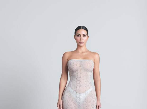 Модель также надела капроновые колготки, лаковые босоножки на каблуках и чокер. Бизнесвумен уложили волосы в косы и сделали вечерний макияж с накладными ресницами, розовыми румянами и нюдовой помадой.На прошлой неделе Ким Кардашьян стала гостьей гала-вечера Музея киноакадемии, который прошел в Лос-Анджелесе. Модель позировала перед камерами телесном макси-платье Maison Margiela с экстремально узким корсетом и маске. Звезда реалити-шоу добавила к образу колье с изумрудами и кольца. Позже бизнесвумен сняла маску и продемонстрировала укладку с кудрявыми волосами и макияж с черными стрелками.