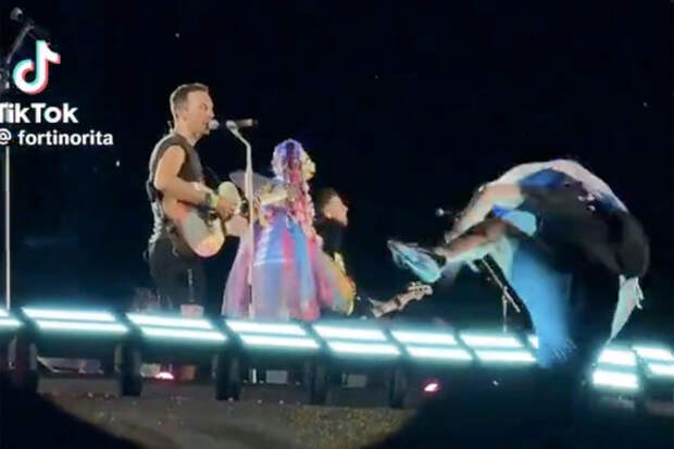 Фронтмену коллектива Крису Мартину пришлось прервать концерт, когда он увидел, как зритель карабкается к краю сцены и падает вниз.