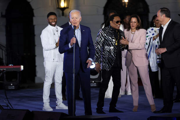 "Во время мероприятия в преддверии национального праздника, который состоится на следующей неделе, глава государства слово пережил короткое замыкание, пока остальные участники, включая вице-президента Камалу Харрис, подпевали под зажигательную музыку", — говорится в тексте.