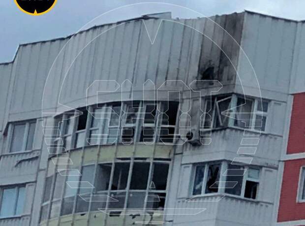 На кадрах видно черное пятно над окном квартиры, куда ударил дрон.