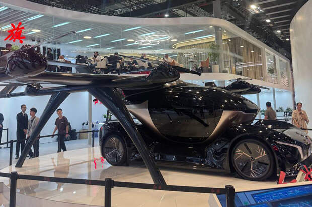 На автосалоне в Шанхае показали летающий автомобиль Hongqi. Об этом сообщает Telegram- канал No Limits.