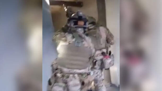 На видео показано, как вооруженная группа окружает дом и задерживает подозреваемых. Один из них показывает силовикам тайник с оружием, обустроенный в кресле.