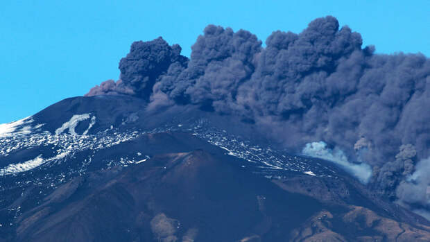 Как отмечается, после нескольких взрывов и извержения вулкан выбросил столб дыма.