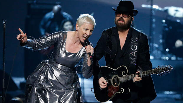 Энни Леннокс начинала свою карьеру в 80-е в составе синти-поп-дуэта Eurythmics, куда входил ее бывший возлюбленный, композитор Дэйв Стюарт. После премьеры песни "Sweet Dreams" музыкантов ждал оглушительный успех: хит быстро взобрался на верхние строчки мировых чартов, и по сей день остается их визитной карточкой.