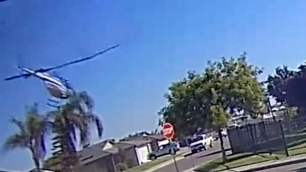 На видео, которое было снято с камеры дверного звонка Ring, можно увидеть, как вертолет летит по спирали с неба и врезается в пальму.