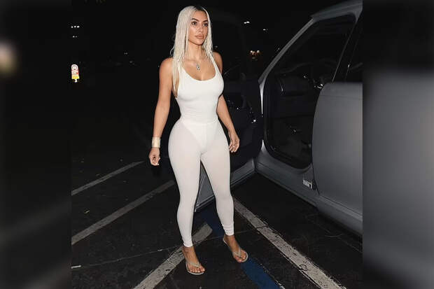 43-летняя Ким Кардашьян вышла на публику в молочном боди и полупрозрачных легинсах в тон. При этом звезда реалити-шоу не стала надевать бюстгальтер. Модель дополнила образ массивным браслетом и вьетнамками.